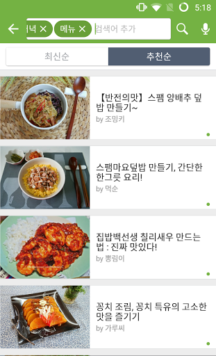 -Các công thức được các đầu bếp nổi tiếng giới thiệu tại chương trình truyền hình Hàn Quốc sẽ được tải lên ngay lập tức.